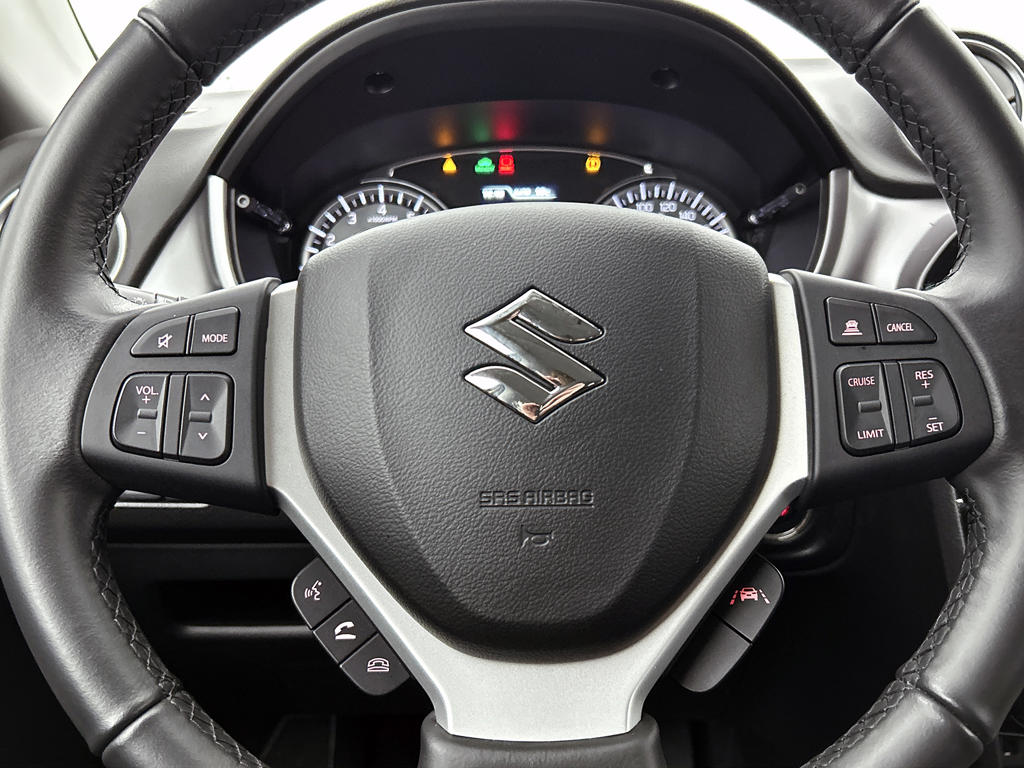 Een handige optie is de achteruitrijcamera. Achteruitrijden, inparkeren en manoeuvreren gaat gemakkelijker dan ooit. Adaptive cruise control is een comfortabele en veilige optie. Het systeem reguleert de snelheid en houdt automatisch afstand tot jouw voorligger. Een belangrijke veiligheidsvoorziening is de bediening van het audiosysteem via knoppen op het stuur. Dab-ontvangst geeft daarbij een kraakheldere ontvangst. Omdat je nu eenmaal niet overal ogen hebt, is deze Suzuki Vitara voorzien van een achteropkomend verkeer waarschuwing die registreert wanneer de afstand tot je achterligger te krap is. De electronic climate control zorgt voor een prettige binnentemperatuur. Met schakelpaddles aan het stuur, regensensor, keyless entry, bagage afdekhoes en boordcomputer is deze auto helemaal compleet.