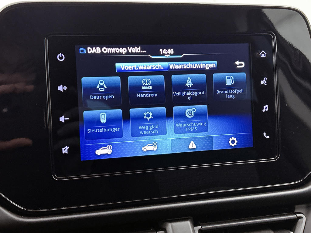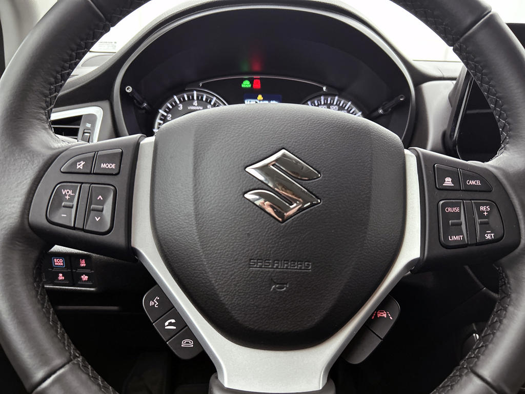 Aan boord van deze Suzuki houden verschillende geavanceerde systemen voor jou de weg in de gaten. Ze waarschuwen je voor noodsituaties en kunnen in een aantal gevallen ook zelf ingrijpen. Een belangrijke bijdrage aan de veiligheid onderweg levert de verkeersbord-detectie. Het Lane-keeping systeem let constant op en waarschuwt of corrigeert als je onoplettend over de lijnen van de rijstrook gaat. Het forward collision warning-systeem waarschuwt indien een botsing dreigt met een voorliggend of tegemoetkomend voertuig. De auto is ook uitgerust met dodehoekdetectie, hill hold functie, brake assist, vermoeidheidsherkenning en bandenspanningcontrolesysteem.