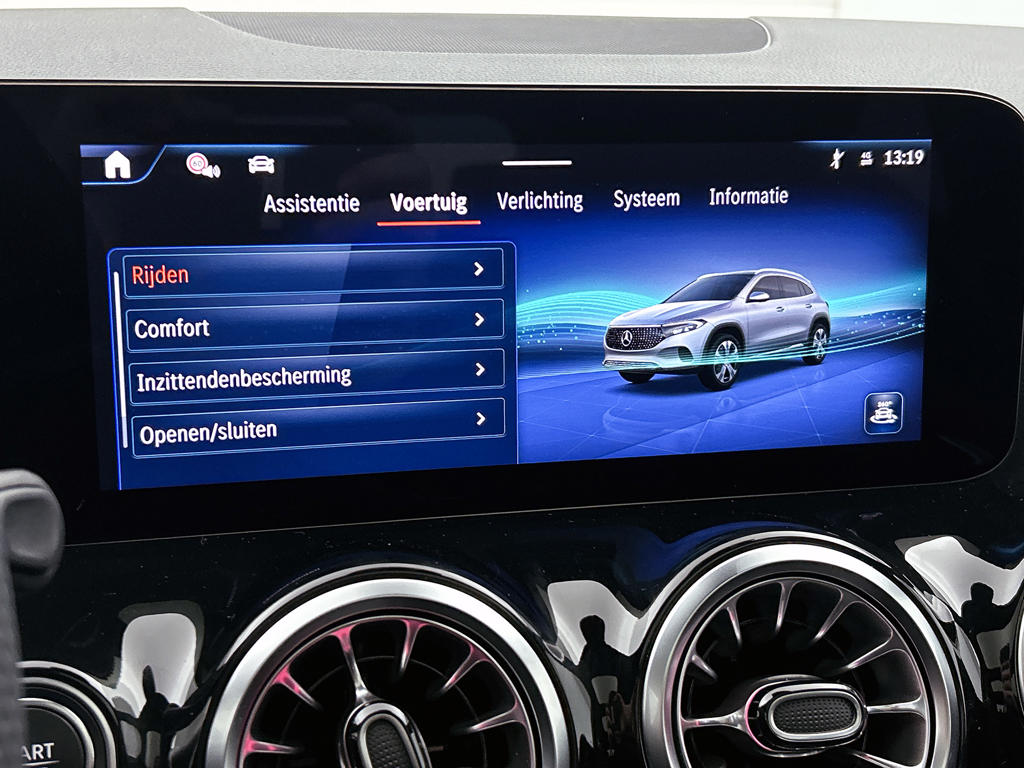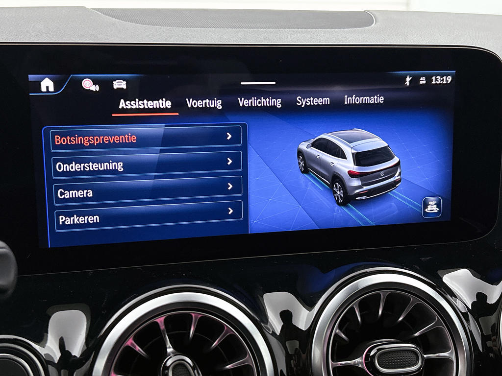 Deze Mercedes-Benz biedt je niet alleen comfort en rijplezier, maar ook veiligheid. Actieve veiligheidssystemen houden voor jou de weg in de gaten en reageren op onvoorziene situaties voordat jij dat kunt. Altijd je blik op de weg: met de head-up display hoef je geen moment je ogen te verplaatsen. De info wordt geprojecteerd in het zichtveld voor je. Deze Mercedes-Benz EQA is ook behulpzaam als het gaat om een rechte koers. Het Lane-keeping systeem signaleert en corrigeert als je onbedoeld de rijstrooklijnen dreigt te overschrijden. Rijdt een ander voertuig in jouw dode hoek dan waarschuwt het systeem met een signaal. De veiligheid van deze auto wordt verder verhoogd door actief stadsremsysteem en bandenspanningcontrolesysteem.