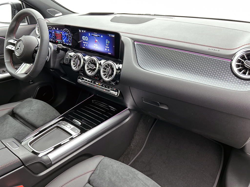 Mercedes-Benz heeft de auto opnieuw uitgevonden. De volledig elektrische Mercedes-Benz EQA is duurzaam, maar biedt tegelijk veel rijcomfort en geweldige prestaties. Dankzij de automatische transmissie en elektrische aandrijving, navigeer je gemakkelijk door het verkeer. Voor de echte liefhebber is de AMG-styling natuurlijk een dikke plus. Het is een nieuwe auto, hij is nu uit voorraad leverbaar. De krachtige motor geeft deze Mercedes-Benz uitstekende prestaties. Dankzij de elektrische stoelbediening is het gemakkelijk om de optimale zitpositie te vinden. Met een druk op de knop gaat de elektrische achterklep open. Zicht, licht en toch dicht! Een geweldige rijervaring met het glazen panoramadak. Je wordt in deze auto ook getrakteerd op Full LED koplampen, AMG-styling, warmtewerend glas, dynamisch onderstel, in delen neerklapbare achterbank en verstelbare lendensteunen.