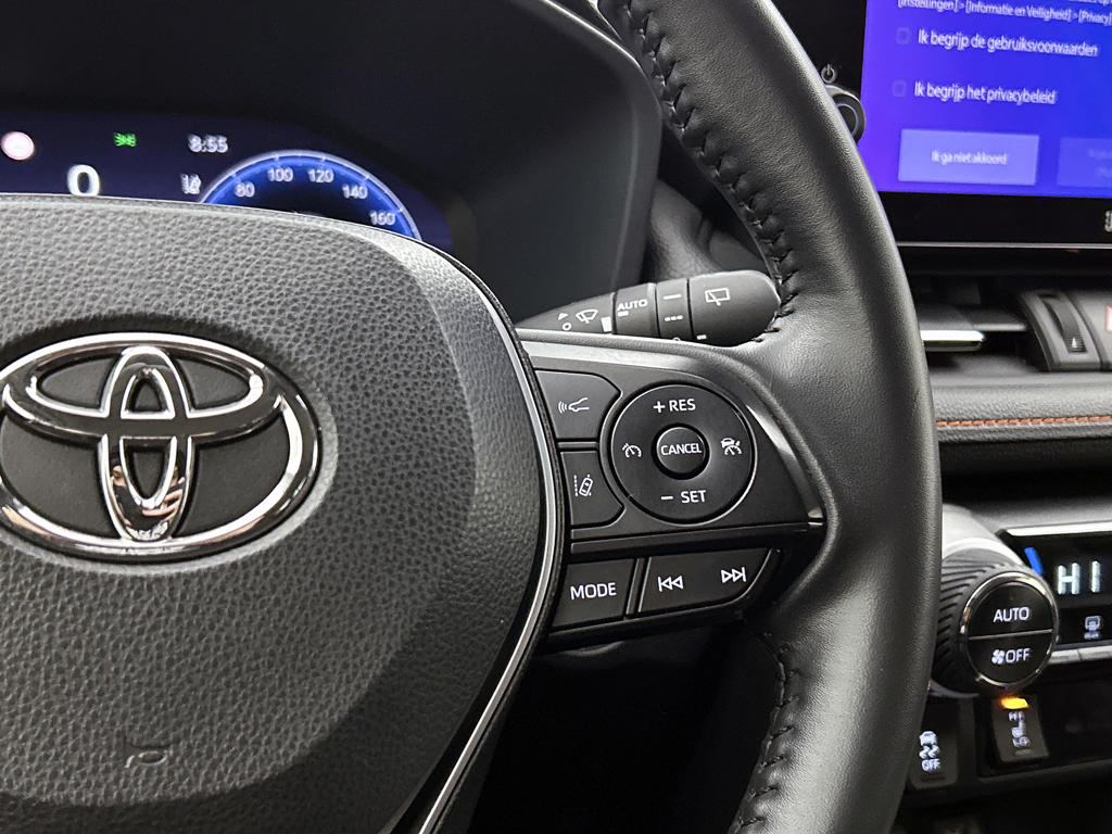 Een gevisualiseerd overzicht van alle belangrijke functies wordt geleverd door het digitale dashboard. Met een gerust hart achteruitrijden? Dat kan, dankzij de achteruitrijcamera. Adaptive cruise control is een comfortabele en veilige optie. Het systeem reguleert de snelheid en houdt automatisch afstand tot jouw voorligger. Het infotainmentsysteem bedien je met je vingers of met je stem, met dank aan de geïntegreerde stembediening. Waar je zelf ook bent, je staat altijd in contact met de auto via de app op uw smartphone. Zo controleer je uiteenlopende functies, ook op afstand. De uitrusting van deze Toyota is met full map navigatiesysteem, achteropkomend verkeer waarschuwing, electronic climate control, schakelpaddles aan het stuur, draadloos opladen en DAB ontvangst behoorlijk compleet.