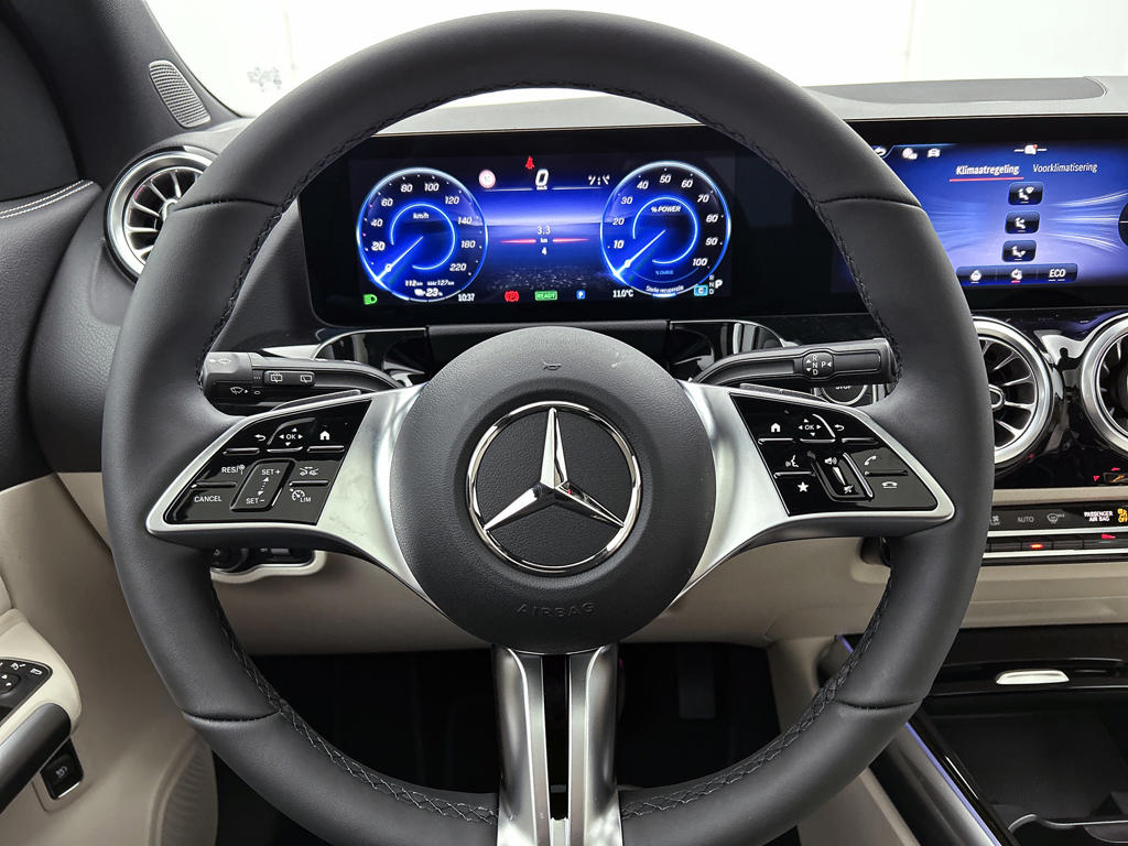 Half werk zul je bij geen enkele Mercedes tegenkomen. 'The best or nothing', inderdaad. Het aantal kilometers dat je op een acculading kunt rijden, is ruimschoots genoeg voor de gangbare dagelijkse ritten, en het opladen kan in de meeste gevallen 's nachts gebeuren. Deze nieuwe auto is nu uit voorraad leverbaar. Een krachtige motor geeft deze auto zijn sportieve prestaties. Tijdens gure dagen is het prettig zitten in de verwarmbare voorstoelen. Met de comfortstoelen heb je de zekerheid: elke rit fit door de juiste zit. Met een druk op de knop gaat de elektrische achterklep open. Het glazen panoramadak bied jou een breed zicht op de omgeving. Ook 18 inch lichtmetalen velgen, Full LED koplampen, trailer assistent, in delen neerklapbare achterbank, verstelbare lendensteunen en snelheidsafhankelijke stuurbekrachtiging zijn aan boord.