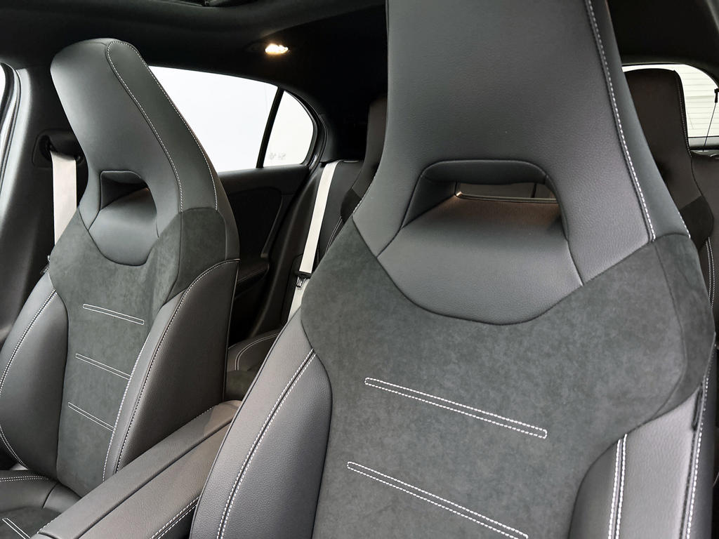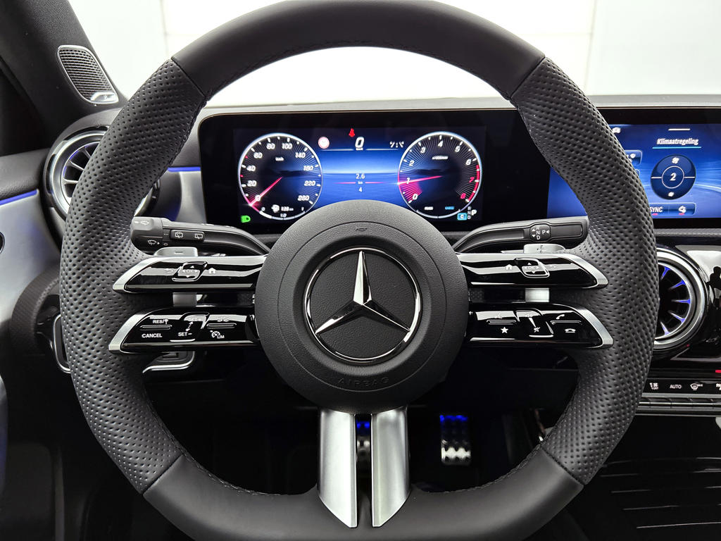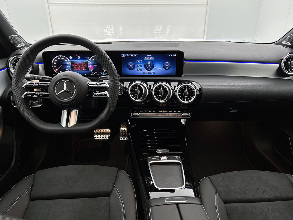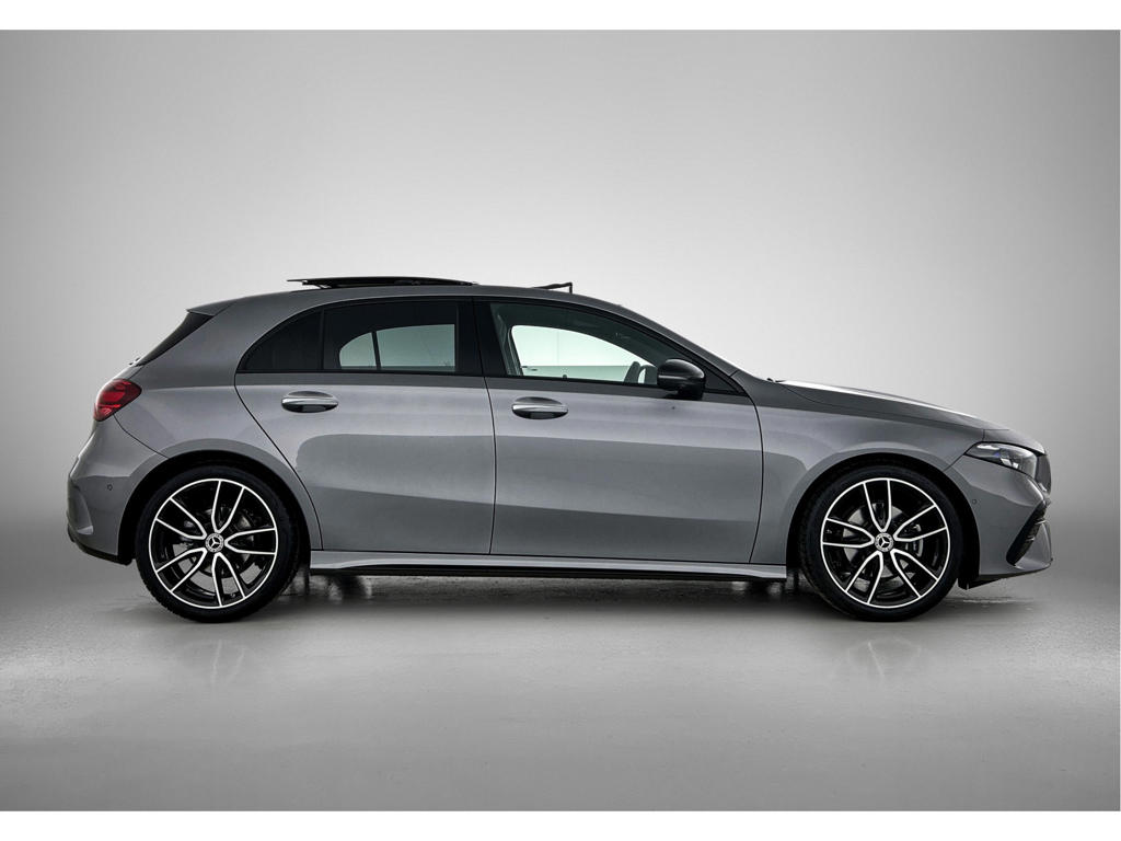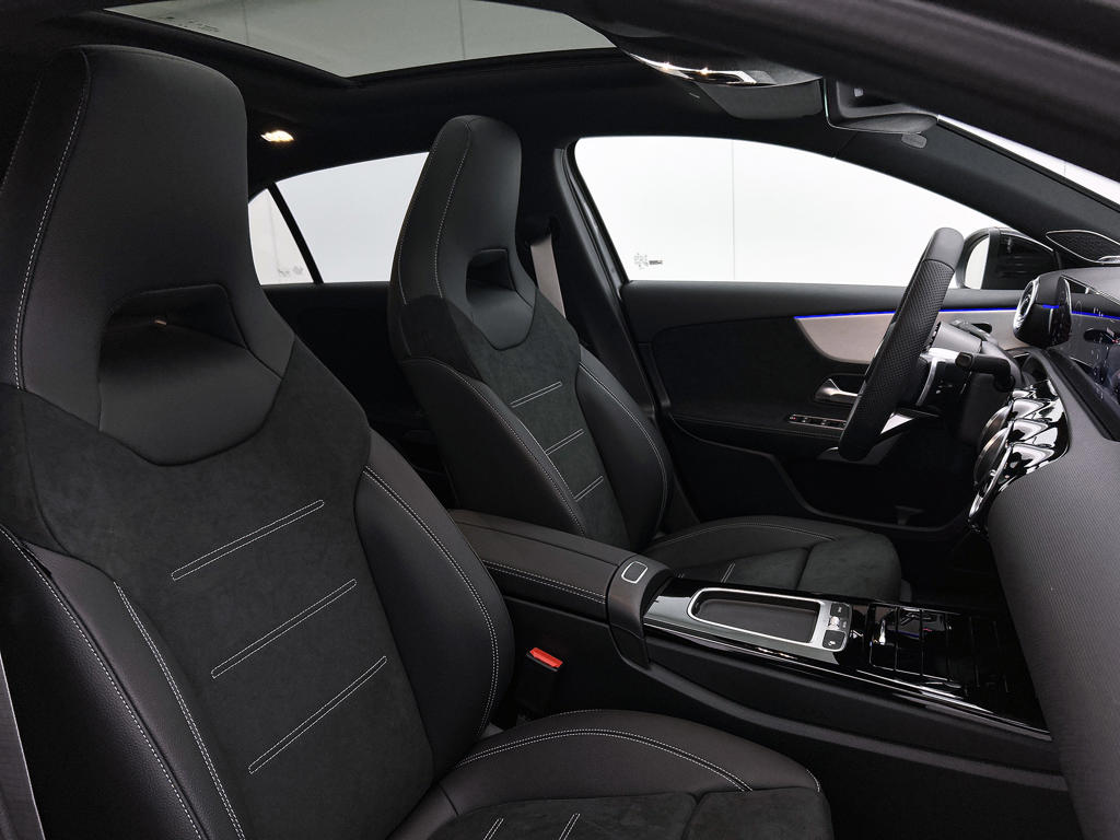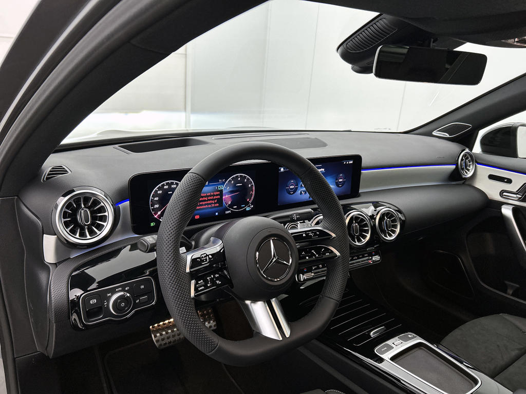 Je voelt je meteen thuis achter het stuur van deze Mercedes-Benz A-klasse, met zijn ruime en comfortabele interieur. De AMG-styling verfraait het uiterlijk met verschillende sportieve accenten. Deze nieuwe auto is nu uit voorraad leverbaar. De krachtige benzinemotor van deze auto is gekoppeld aan een automatische transmissie. Zit je goed? De stoelen zijn eenvoudig instelbaar dankzij de elektrische bediening met geheugen. Het wijdse uitzicht door het glazen panoramadak maakt van elke rit een belevenis. De verlichting van de koplampen geeft het gevoel dat het altijd dag is. De slimme matrix LED-technologie past zich aan bij tegenliggers, zonder verlies van lichtkwaliteit. Bij de zeer complete uitrusting van deze auto behoren ook 18 inch lichtmetalen velgen, AMG-styling, dynamisch onderstel, in delen neerklapbare achterbank, LED-achterlichten en verstelbare lendensteunen.
