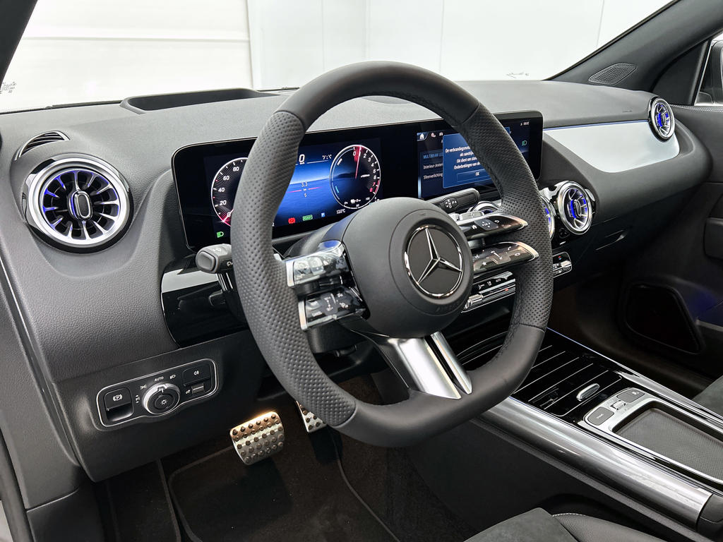 Dynamische styling, zorgvuldig afgewerkt met fraaie materialen en ontworpen met oog voor detail. De Mercedes-Benz GLA is van binnen en van buiten een toonbeeld van Duits design. AMG-styling geeft deze auto een extra dynamische uitstraling. Het gaat hier om een nieuwe auto, hij is nu direct leverbaar. Op een dag rijden we allemaal elektrisch. Maar voor nu is de hybride oplossing van elektrisch en benzine ideaal! Zo ook bij deze Mercedes-Benz GLA. Je past de stoelen moeiteloos aan, ze zijn elektrisch in te stellen en hebben bovendien een geheugen. De elektrische achterklep opent met een druk op de knop, zodat jij gemakkelijk toegang heeft tot de bagageruimte. Het wijdse uitzicht door het glazen panoramadak maakt van elke rit een belevenis. Koplampen voorzien van de allernieuwste lichttechniek, matrix LED-verlichting. Bij de uitrusting van deze auto horen onder meer AMG-styling, warmtewerend glas, dynamisch onderstel, in delen neerklapbare achterbank en verstelbare lendensteunen.