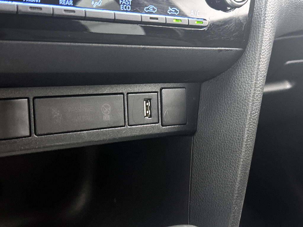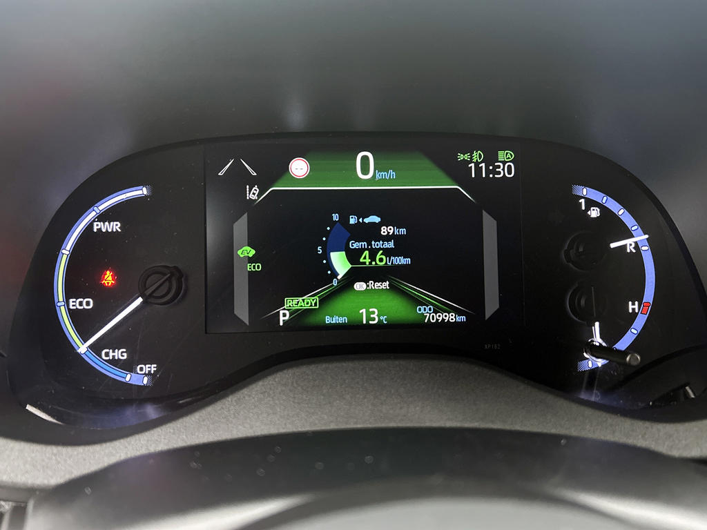 Een cockpit, een informatiecentrum... Wat is de cabine eigenlijk niet? Dankzij het digitale dashboard ben je van alles op de hoogte. Met adaptive cruise control houdt deze auto automatisch afstand tot jouw voorligger. De ingebouwde Connected Services vertellen je via de app alles over de status van de auto. Locatie, onderhoudsstatus, brandstofpeil en nog veel meer! Selecteer jouw reisbestemming en het full map navigatiesysteem brengt je snel waar je moet zijn. Jij verwacht natuurlijk automatische airconditioning in deze auto, en die is er dan ook. De uitrusting van deze Toyota is met DAB ontvangst, regensensor, keyless entry, buitentemperatuurmeter, automatisch dimmende binnenspiegel en lederen stuur behoorlijk compleet.