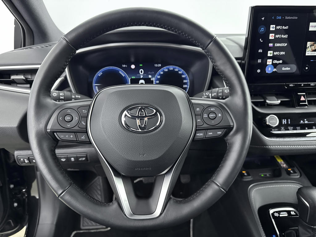 'Boem is ho'? Niet met deze achteruitrijcamera. U ziet achter net zo goed als voor en krijgt een duidelijk geluidssignaal! Als je de adaptive cruise control inschakelt, regelt de auto zelf de snelheid en de afstand tot de auto voor je. Dankzij Connected Services houd je de auto nog gemakkelijker in topconditie. Elke dag. Het is veiliger om altijd je ogen op de weg te houden en je handen aan het stuur; daarom is dit voertuig uitgerust met een audio-installatiesysteem met DAB-ontvangst en een full map navigatiesysteem dat kan worden bediend via het stuurwiel of spraakbediening. Verdient de accu van je smartphone ook aandacht? Opladen kan zonder snoeren, met de draadloze telefoonlader. Deze Toyota is voorzien van achteropkomend verkeer waarschuwing, automatische airconditioning, regensensor, buitentemperatuurmeter, automatisch dimmende binnenspiegel en centrale deurvergrendeling met afstandsbediening.