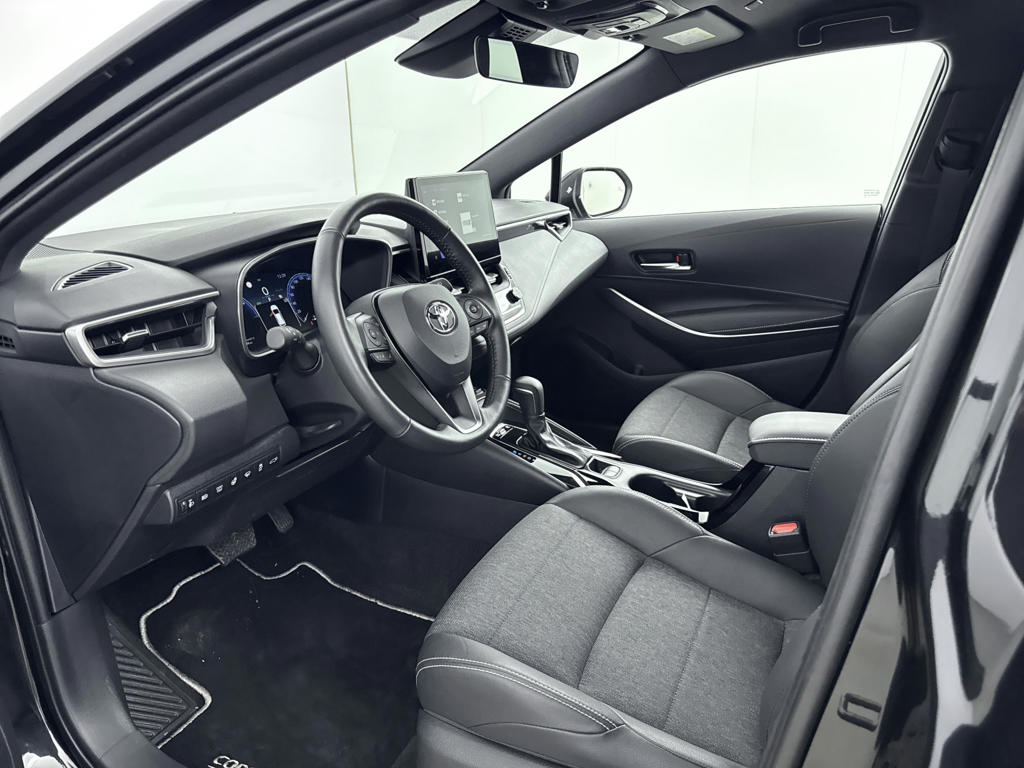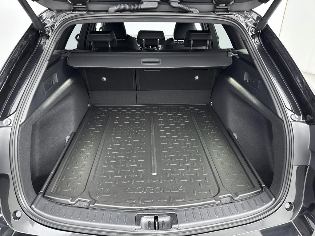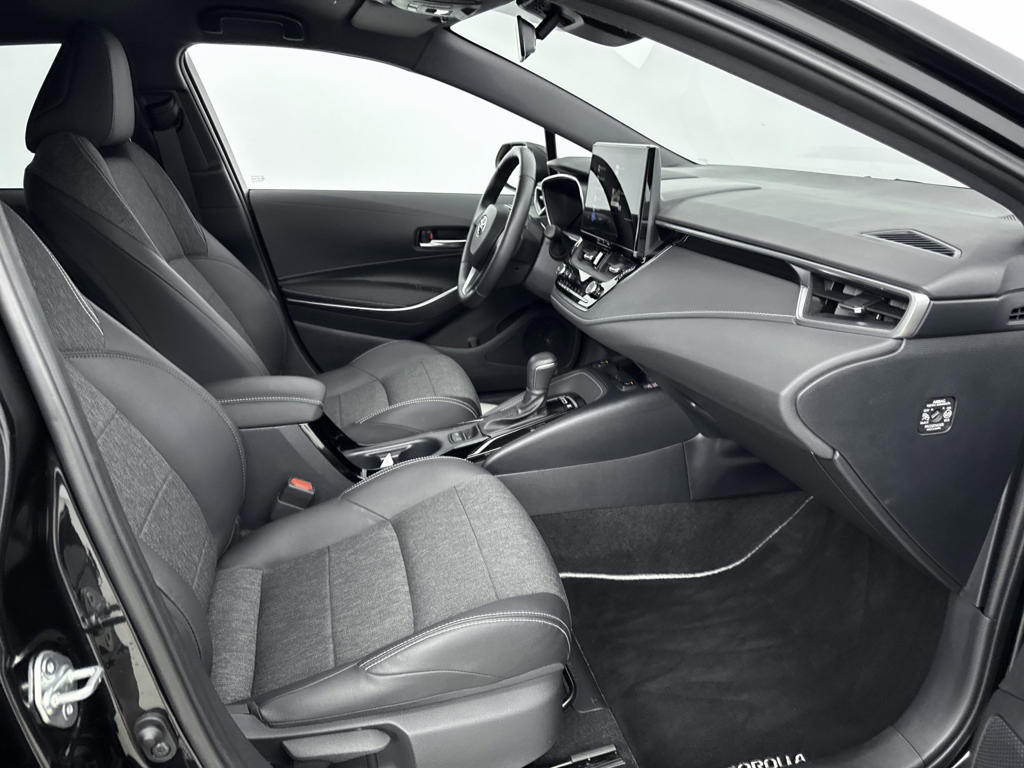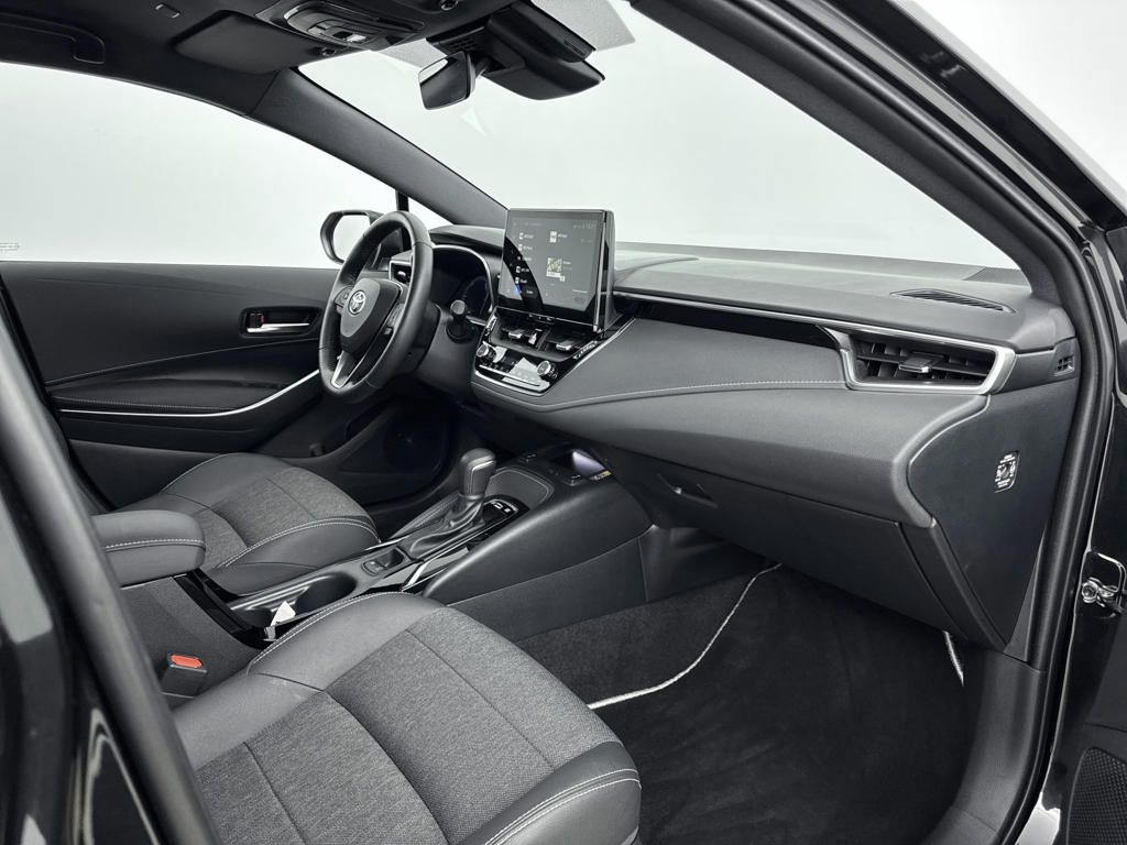 Zoals je mag verwachten van deze Toyota Corolla Touring Sports is hij uitgerust met een reeks aan actieve veiligheidssystemen. In het instrumentarium laat de verkeersborddetectie de actuele verkeersborden zien. Een camera houdt de juiste koers binnen de rijstrook in de gaten en het Lane-keeping systeem corrigeert bij afwijkingen. Forward collision warning is een automatisch waarschuwingssysteem dat direct in werking treedt bij gevaar voor een kop-staartbotsing. De veiligheid van deze auto wordt verder verhoogd door hill hold functie, brake assist, vermoeidheidsherkenning en bandenspanningcontrolesysteem.
