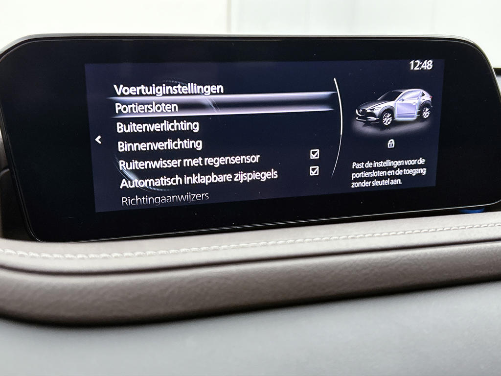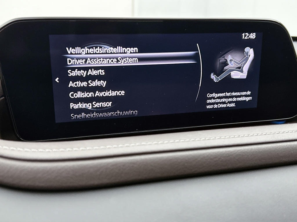 De nieuwste veiligheidssystemen komen in deze Mazda CX-30 samen. In het instrumentarium zie je tijdens de rit ook de belangrijkste verkeersborden aangegeven, die de auto automatisch voor je leest. Het Lane-keeping systeem let constant op en waarschuwt of corrigeert als je onoplettend over de lijnen van de rijstrook gaat. Forward collision warning helpt je om kop-staart aanrijdingen te voorkomen. Bovenop deze veiligheidsfeatures heeft deze Mazda bovendien head-up display, dodehoekdetectie, hill hold functie, brake assist, vermoeidheidsherkenning en bandenspanningcontrolesysteem.