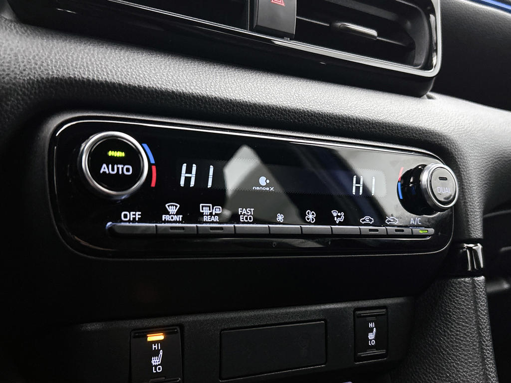 Modern design en bijzondere techniek bepalen de kwaliteiten van de hybride Toyota Yaris. Deze auto is uit 2025, hij heeft 12027 kilometer gelopen. Zuinig, slim en milieuverantwoord! Deze hybride auto combineert een verbrandingsmotor en een elektromotor: voordelig rijden en gunstig in onderhoud. Bestuurder en bijrijder krijgen een warm welkom: deze Toyota Yaris is voorzien van verwarmbare voorstoelen. Zijwaartse g-krachten worden solide opgevangen door de sportstoelen. Bij de rijke uitrusting horen ook 17 inch lichtmetalen velgen, LED koplampen, geluidsisolerende ramen, dakspoiler, in delen neerklapbare achterbank en LED-achterlichten.