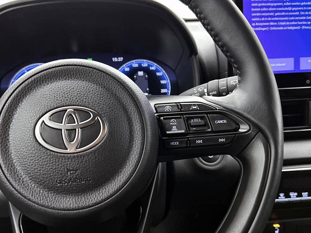 Hoeveel ruimte heeft u nog bij het inparkeren? De achteruitrijcamera brengt helder in beeld wat zich achter de auto bevindt en geeft een geluidssignaal. Met adaptive cruise control houdt de auto zelfstandig afstand tot jouw voorligger. Een veiligheidsverhogende optie waarmee je comfortabel onderweg bent. Met je smartphone maak je overal contact met de auto. Remote services geven direct inzicht in uiteenlopende functies en zijn op afstand te activeren. Laat je onderweg niet afleiden, de bediening van het audio-installatiesysteem en ook het full map navigatiesysteem gaat met knoppen op het stuur. Natuurlijk is de audio-installatie voorzien van DAB-ontvangst. Telefoon onderweg aan de lader? Daar komt geen kabeltje aan te pas, want deze Toyota Yaris is voorzien van een draadloze oplaadmogelijkheid voor telefoons. Natuurlijk behoren kruisend verkeer detectie, electronic climate control, regensensor, keyless entry, buitentemperatuurmeter en automatisch dimmende binnenspiegel ook tot de uitrusting van deze complete auto.