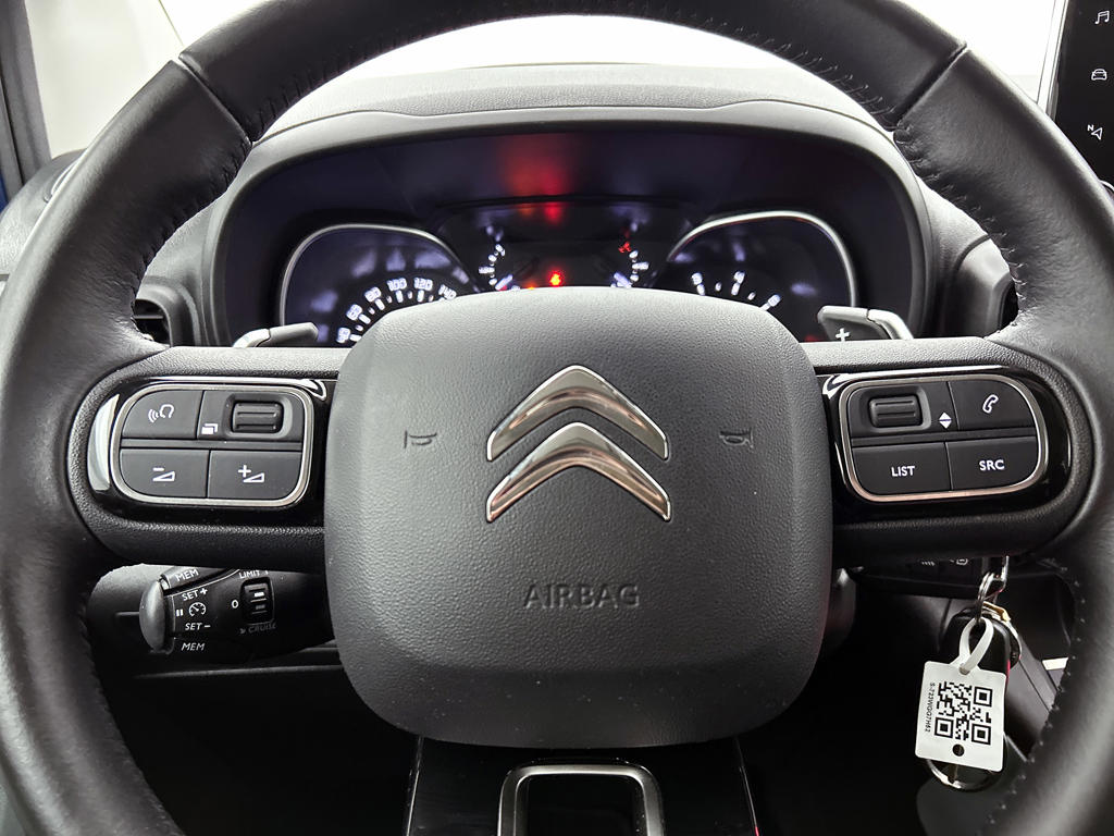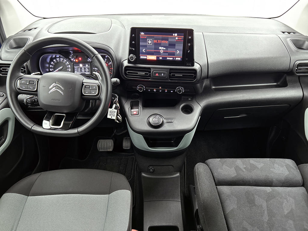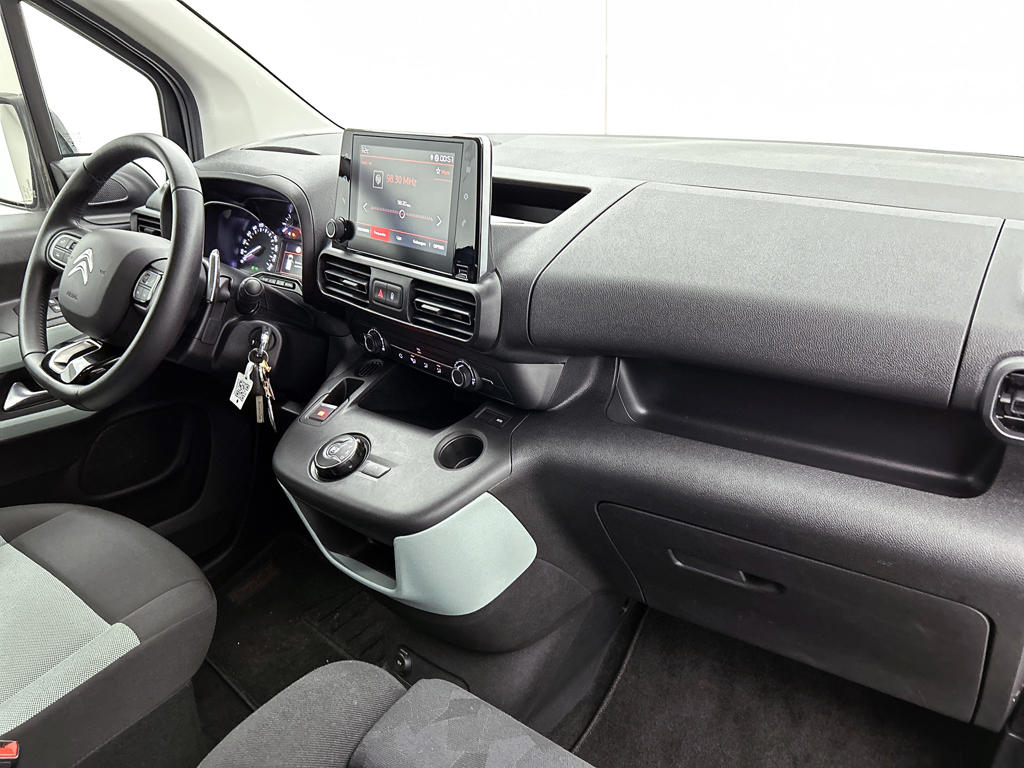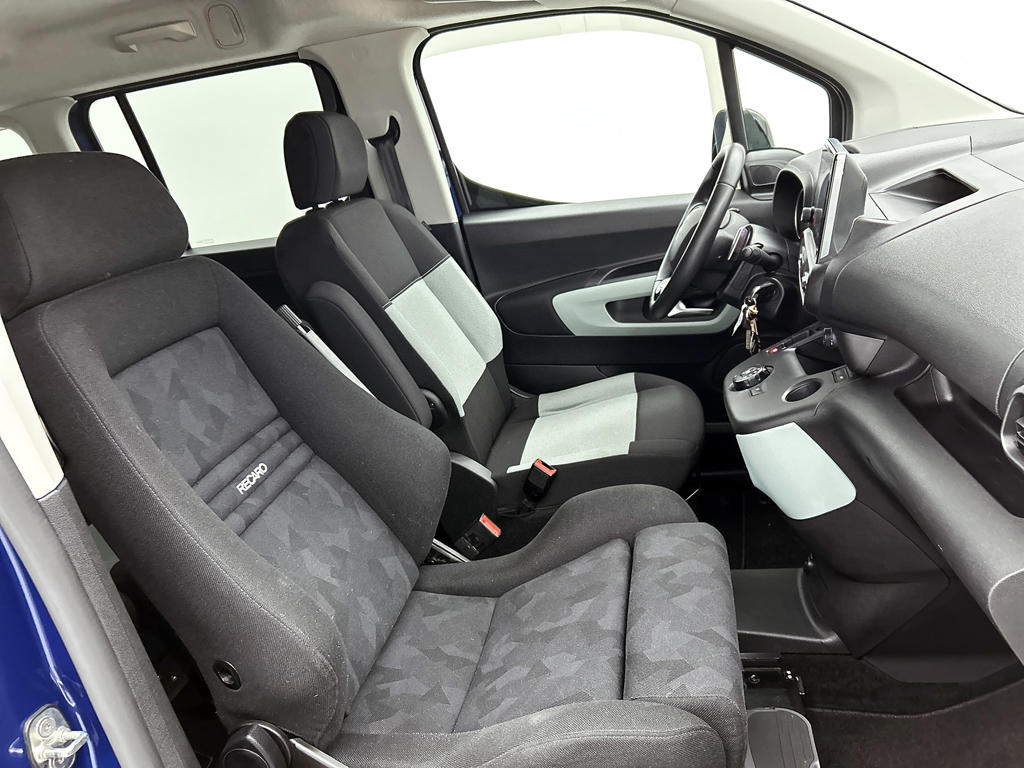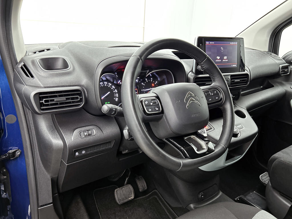 Oliepeil, bandenspanning, sloten en andere functies zijn via een speciale app overal te checken dankzij Connected Services. Gemakkelijk en veilig is de spraakbediening voor het audiosysteem. Daarbij kunt u het ook bedienen met de knoppen op het stuur. De auto is ook uitgevoerd met automatische airconditioning. Boem is ho? Niet bij deze Citroën Berlingo XL. De piepjes van de parkeersensoren waarschuwen u op tijd voor obstakels. Achter het stuur van deze Citroën bent u niet alleen. De auto kijkt als het ware met u mee tijdens de rit. De regensensor schakelt de ruitenwissers in als het nodig is en de automatisch inschakelbare verlichting doet de lichten voor u aan. Ook is de Citroën uitgerust met: WIFI-hotspot, cruise control, automatisch dimmende binnenspiegel, lederen stuur, centrale deurvergrendeling met afstandsbediening en bagage afdekhoes.