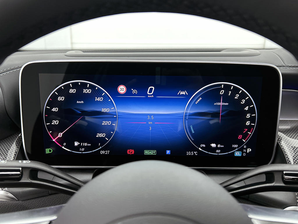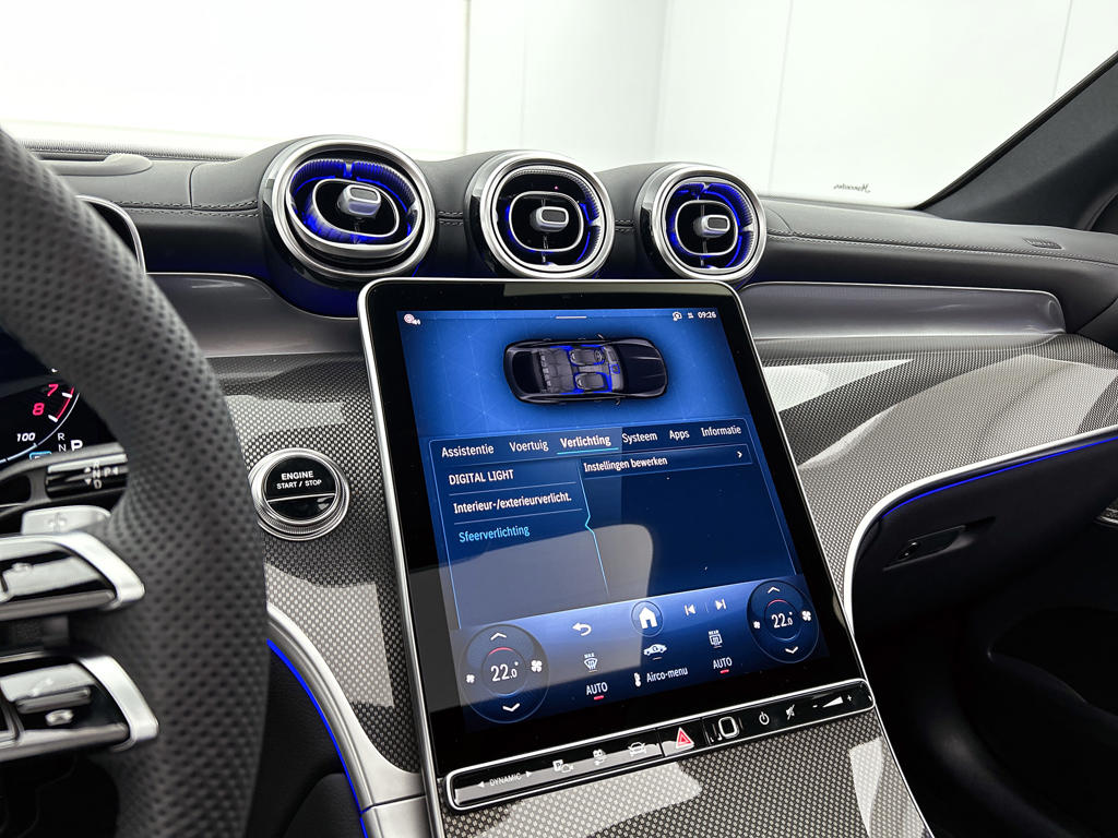 Het digitale dashboard in deze auto maakt personalisatie van jouw cockpitinterface mogelijk. Het inventieve 360 graden camerasysteem op deze auto heeft de functie om jou assistentie te bieden in nauwe ruimtes en straten, waar het achteruit rijden vaak een uitdaging is. Het infotainmentsysteem bedien je met je vingers of met je stem, met dank aan de geïntegreerde stembediening. Kilometerstand? Oliepeil? Accuspanning? Allemaal te zien via de app. Overal. Altijd. Dankzij Connected Services. Met het navigatiesysteem met harde schijf kies jij de snelste route naar jouw eindbestemming. Je bent in deze Mercedes-Benz ook voorzien van WIFI-hotspot, achteropkomend verkeer waarschuwing, automatische airconditioning, draadloos opladen, DAB ontvangst en regensensor.