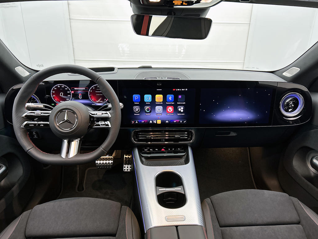 Je merkt het aan de look and feel van deze auto: dit is kwaliteit. De Mercedes-Benz CLA is ontworpen volgens de Duitse opvattingen van kwaliteit en degelijkheid, maar biedt tegelijk een hoge mate van comfort en uitstekende rijkwaliteiten. De AMG-styling geeft een niet te missen uitstraling. Je hoeft niet langer te wachten, deze splinternieuwe auto is nu direct beschikbaar Brandstofmotor, elektromotor? Deze hybride Mercedes-Benz CLA combineert ze. En dat is te merken bij de pomp, want die zie je voortaan minder vaak. Behaaglijk onderweg zijn? Als bestuurder geniet je van de verwarmbare voorstoelen. Net als je bijrijder! Uitstekende zitsteun en een strakke look? Daar zorgen de sportstoelen voor! Een praktische extra is de elektrisch bedienbare achterklep die opent en sluit met een druk op de knop. Het glazen panoramadak zorgt ervoor dat je je omringd voelt door de omgeving. Wind, sneeuw, hagel, regen... allemaal vergeten als je het verwarmd stuurwiel in handen hebt. Ook is de auto voorzien van: Full LED koplampen, AMG-styling, in delen neerklapbare achterbank, verstelbare lendensteunen, verwarmde ruitensproeiers en snelheidsafhankelijke stuurbekrachtiging.