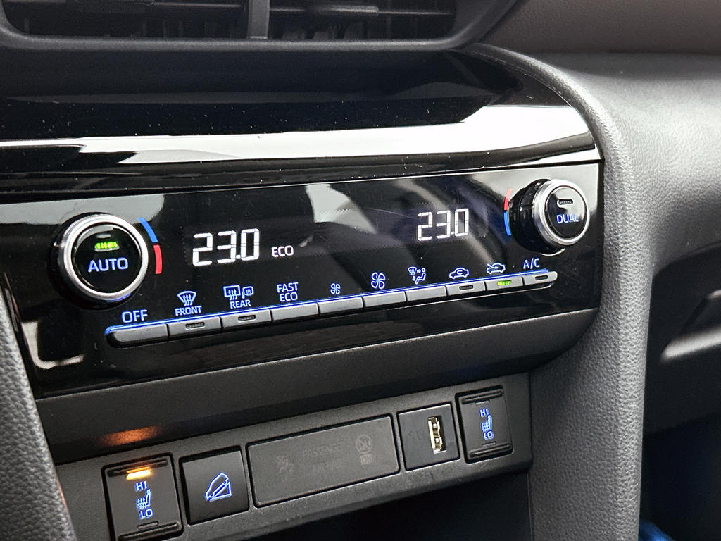 Het digitale dashboard is qua lay-out en zichtbaarheid superslim ingedeeld. Alle functies in één keer in beeld! Comfortabel en veilig achteruitrijden gaat gemakkelijker dan ooit met behulp van de achteruitrijcamera. Adaptive cruise control houdt de ingestelde snelheid vast en houdt afstand tot het voertuig voor je. Hoe is het met de banden, de accu en andere onderdelen? Connected Services maakt het inzichtelijk, 24/7 via de app. De high-end technologie van het high performance audiosysteem staat garant voor geluid van het hoogste niveau. Deze Toyota is voorzien van full map navigatiesysteem, automatische airconditioning, draadloos opladen, DAB ontvangst, regensensor en keyless entry.