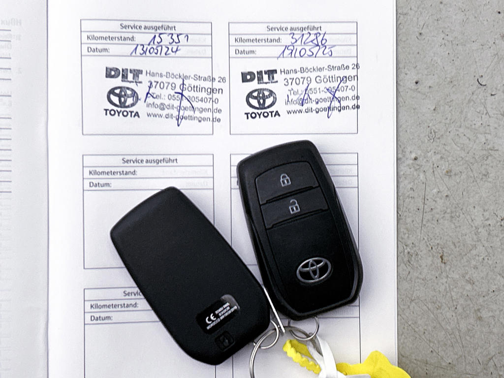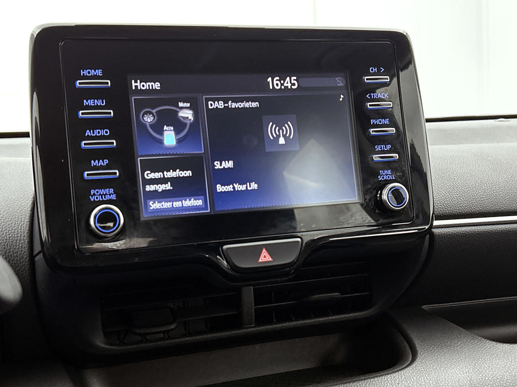 Je leest alle belangrijke functies helder af dankzij het digitale dashboard. Achteruitrijden en inparkeren worden een eitje dankzij de achteruitrijcamera. Adaptive cruise control houdt de ingestelde snelheid vast en houdt afstand tot het voertuig voor je. Appen met je auto? Geen probleem. Je kunt van overal contact opnemen, de functies controleren en activeren. Je bedient 'm met remote services. Onderweg kun jij veilig genieten van het audio-installatiesysteem met DAB-radio en het full map navigatiesysteem. Want in deze Toyota bedien je ze vanaf het stuurwiel. De Toyota is standaard voorzien van: automatische airconditioning, regensensor, keyless entry, buitentemperatuurmeter, automatisch dimmende binnenspiegel en lederen stuur.