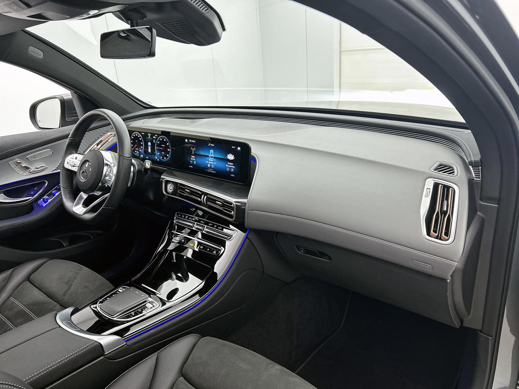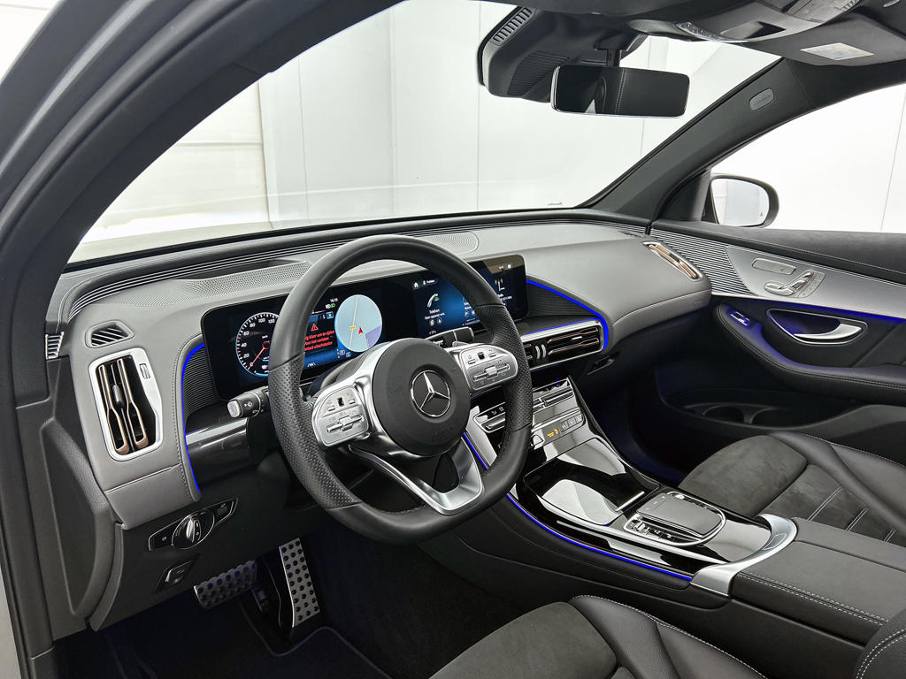 Autorijden zonder plaatselijke uitlaatemissies. Mercedes-Benz maakt deze belofte waar met deze EQC. Geruisloos genieten tegen lage kosten? Dan is deze elektromotor iets voor jou! Het sportieve uiterlijk is meegeleverd in de vorm van de AMG Line Exterieur. De krachtige motor geeft deze Mercedes-Benz uitstekende prestaties. Je past de stoelen moeiteloos aan, ze zijn elektrisch in te stellen en hebben bovendien een geheugen. Laat de zon maar schijnen door het elektrisch bediende glazen panoramadak. De achterklep opent automatisch met een druk op de knop. Handig als je met volle handen staat. Daglicht bij nacht? De koplampen met matrix LED-verlichting zorgen ervoor. Tot de uitrusting behoren ook 20 inch lichtmetalen velgen, AMG Line Exterieur, warmtewerend glas, dynamisch onderstel, in delen neerklapbare achterbank en LED-achterlichten.