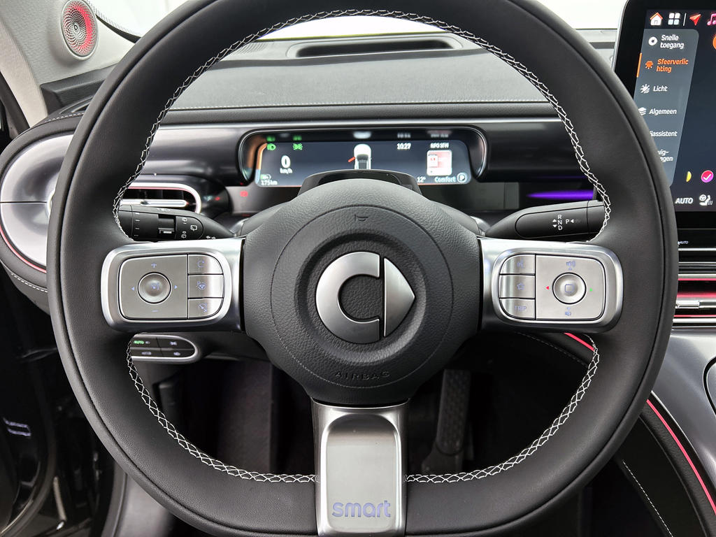 Je geniet nog meer van het rijden met jouw Smart omdat je wordt beschermd door intelligente veiligheidssystemen. Je hoeft je ogen niet meer van de weg te halen om dashboardinformatie te checken. De head-up display projecteert het rechtstreeks in je zichtveld. De camera van de verkeersborddetectie herkent verschillende soorten verkeersborden en toont deze op het dashboard. Het Lane-keeping systeem let constant op en waarschuwt of corrigeert als je onoplettend over de lijnen van de rijstrook gaat. Met voorzieningen als dodehoekdetectie, forward collision warning system, hill hold functie, vermoeidheidsherkenning, autonoom remsysteem en bandenspanningcontrolesysteem, ben je altijd veilig onderweg.