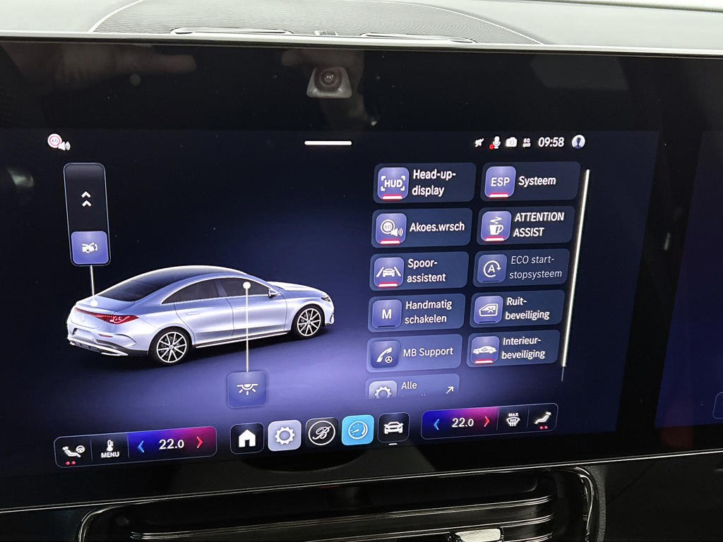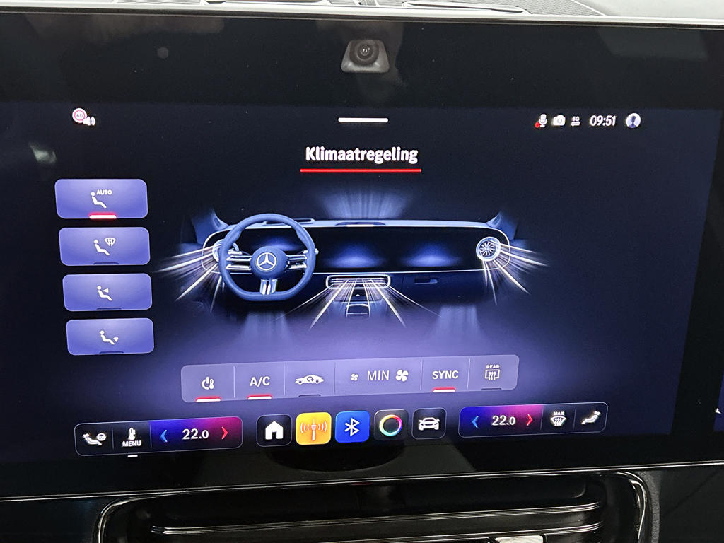 Aan boord van deze Mercedes-Benz houden verschillende geavanceerde systemen voor jou de weg in de gaten. Ze waarschuwen je voor noodsituaties en kunnen in een aantal gevallen ook zelf ingrijpen. Dashboardinfo checken zonder je ogen van de weg te halen? Dat kan met de head-up display. Een belangrijke bijdrage aan de veiligheid onderweg levert de verkeersbord-detectie in deze Mercedes-Benz. Met het Lane-keeping systeem ga je nooit onbedoeld over de streep. Verder is deze auto uitgerust met dodehoekdetector detectiesysteem, vermoeidheidsherkenning, autonoom remsysteem en bandenspanningcontrolesysteem.