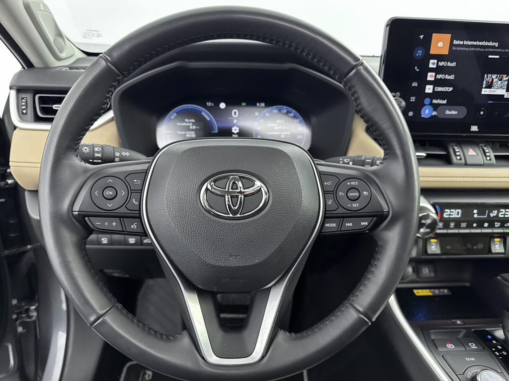 Deze auto is voorzien van een digitaal dashboard waarmee je de cockpit-interface kunt personaliseren. Dankzij de 360 graden camera kun je zowel de voor- als achterzijde van het voertuig in het oog houden, wat bijdraagt aan een veiligere rijervaring. Met adaptive cruise control houdt deze auto automatisch afstand tot jouw voorligger. Qua muziekbeleving onderweg gaat deze auto ook een stevige stap verder dankzij het high performance audiosysteem. Geen onnodige spaghetti van oplaadsnoertjes voor de smartphone: deze Toyota RAV4 heeft een draadloze oplaadmogelijkheid voor telefoons. En deze auto heeft ook dashboard met spraakbediening, full map navigatiesysteem, achteropkomend verkeer waarschuwing, electronic climate control, schakelpaddles aan het stuur en DAB ontvangst als standaard uitrusting.