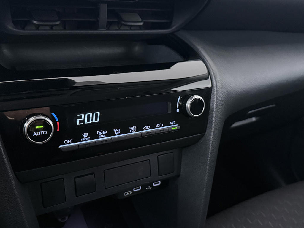 Wat ook opvalt, is de strakke en overzichtelijke informatie die het digitale dashboard levert. Strak inparkeren wordt een fluitje van een cent door de achteruitrijcamera. Als je de adaptive cruise control inschakelt, regelt de auto zelf de snelheid en de afstand tot de auto voor je. De conditie van deze auto is 24/7 inzichtelijk dankzij Connected Services. Een belangrijke veiligheidsvoorziening is de bediening van het audio-installatiesysteem via knoppen op het stuur en middels spraakbediening. DAB-ontvangst geeft daarbij een kraakheldere ontvangst. De uitrusting van deze Toyota is met automatische airconditioning, regensensor, buitentemperatuurmeter, lederen stuur, centrale deurvergrendeling met afstandsbediening en lederen versnellingspook behoorlijk compleet.