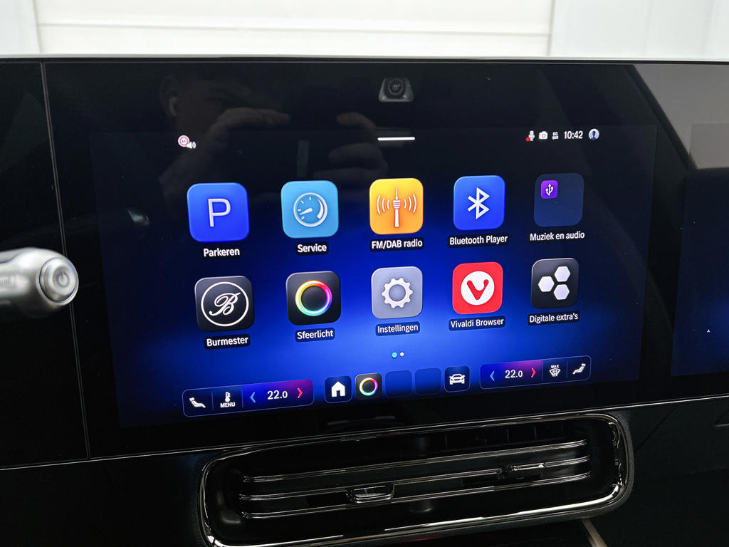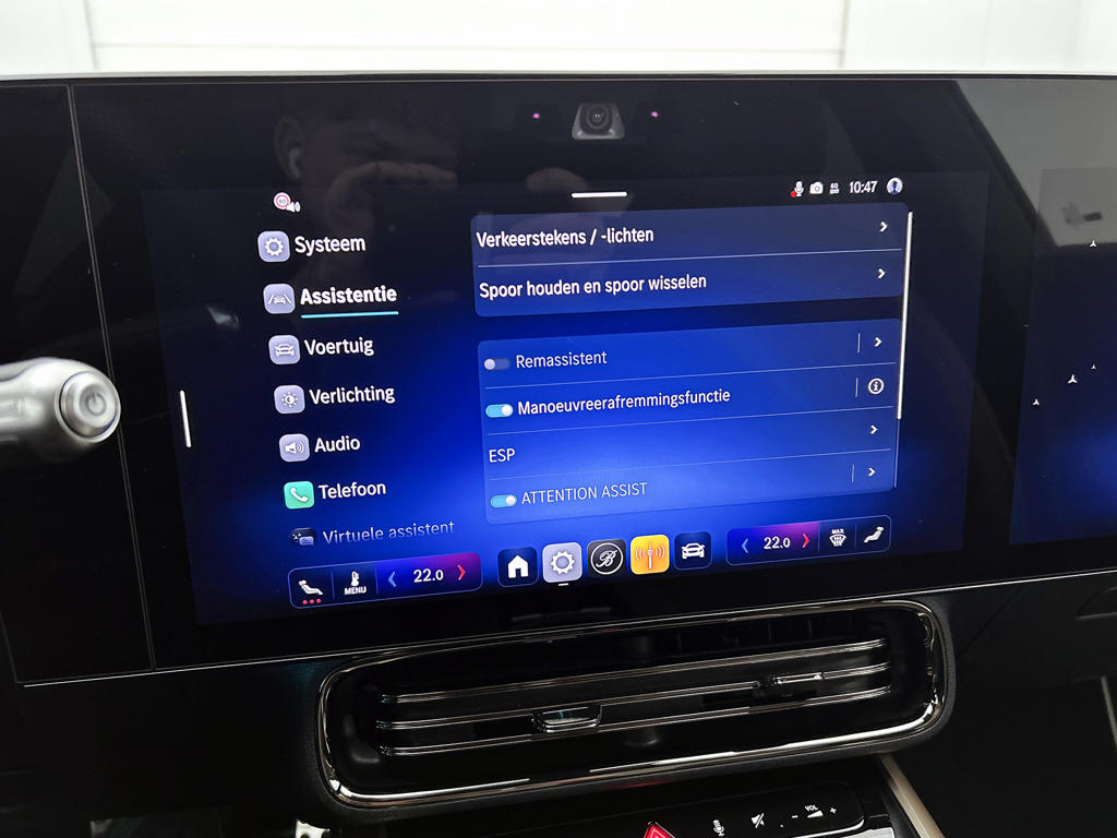 Het systeem controleert alle belangrijke functies en geeft die perfect weer via het digitale dashboard. Een vergeten muurtje, een verborgen paaltje? Dat gebeurt niet meer, dankzij de achteruitrijcamera. Adaptive cruise control houdt de ingestelde snelheid vast en houdt automatisch afstand tot jouw voorligger. Bij deze auto is je smartphone een geavanceerde afstandsbediening. Remote services brengen je overal in contact met je auto. Het audiosysteem is gekoppeld aan het navigatiesysteem met harde schijf en is bovendien voorzien van bluetooth en hoogwaardige radio met DAB+. Ook WIFI-hotspot, draadloos opladen, keyless entry en automatisch dimmende binnenspiegel zijn aan boord.