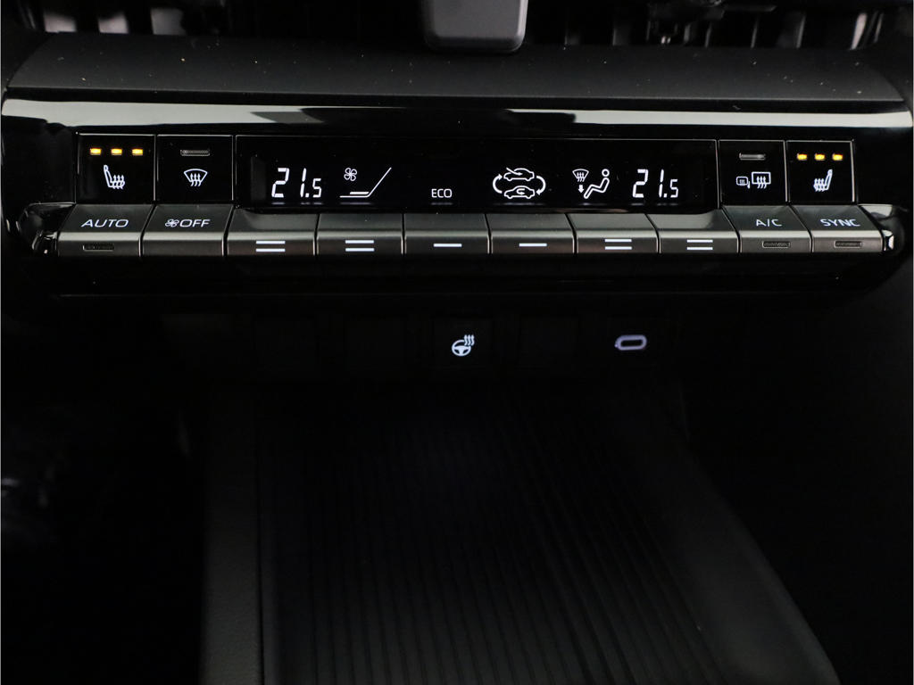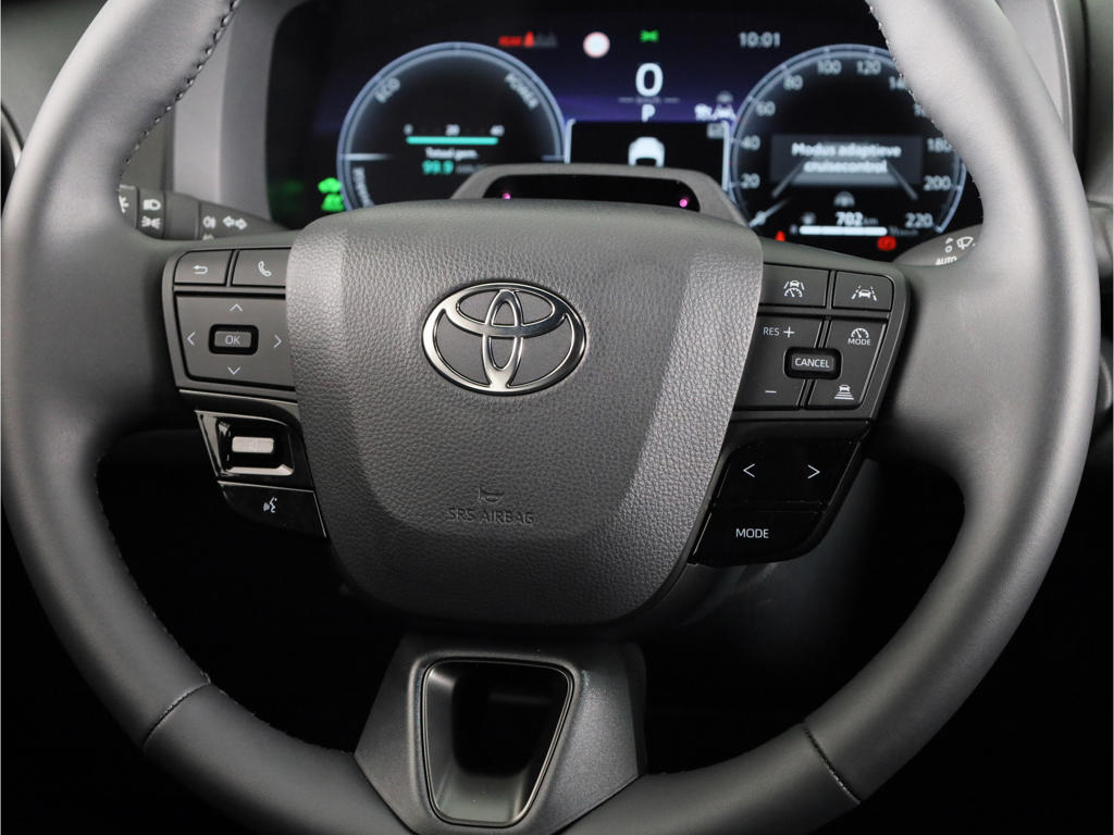 Nekkramp en verdraaide schouders zijn verleden tijd. Door de achteruitrijcamera is iedere meter achter de auto glashelder in beeld. Met adaptive cruise control houdt de auto zelfstandig afstand tot jouw voorligger. Een veiligheidsverhogende optie waarmee je comfortabel onderweg bent. Als je 'm vraagt 'hoe gaat het?' geeft deze auto zelf het antwoord. Via de app op je smartphone. Je checkt de meters waar je maar wilt, of activeert diverse functies alvast. Het full map navigatiesysteem en het audio-installatiesysteem (met DAB-ontvangst!) bedien je met knoppen op het stuur. De sensoren van de achteropkomend verkeer waarschuwing houden zicht op de dode hoeken achter je. Te weinig afstand tot de achterligger? Het systeem geeft direct een signaal. Je bent in deze Toyota ook voorzien van electronic climate control, regensensor, keyless entry, buitentemperatuurmeter, automatisch dimmende binnenspiegel en verstelbaar stuur.