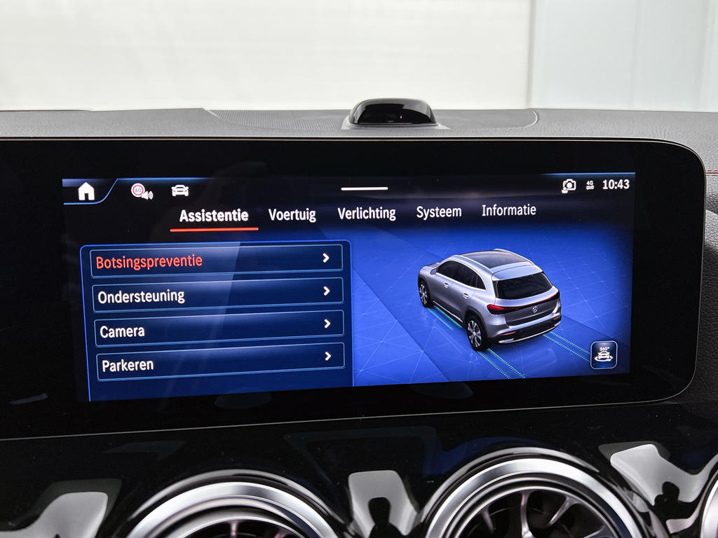 Elektronische veiligheidsvoorzieningen helpen jou onderweg om de situatie op de weg te beoordelen. Deze systemen waarschuwen je als er een riskante situatie ontstaat, en kunnen in bepaalde gevallen ook zelf ingrijpen. Recht voor je zie je de weg én alle dashboardinformatie dankzij de head-up display Deze Mercedes-Benz EQA is ook behulpzaam als het gaat om een rechte koers. Het Lane-keeping systeem signaleert en corrigeert als je onbedoeld de rijstrooklijnen dreigt te overschrijden. De dodehoekdetectie waarschuwt als een ander voertuig zich in jouw dode hoek bevindt. Bovenop deze veiligheidsfeatures heeft deze Mercedes-Benz bovendien actief stadsremsysteem en bandenspanningcontrolesysteem.